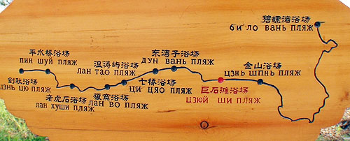 老虎石浴場、狼窩浴場、浪濤嶼浴場、七橋浴場、東灣子浴場、巨石灘浴場、金山浴場);東海灘浴場(